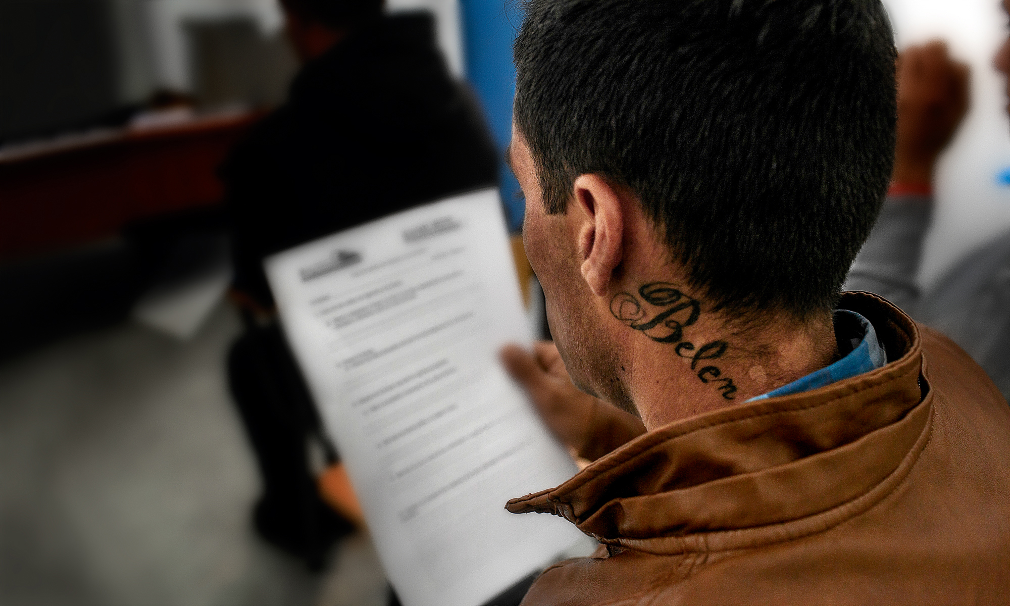 Peter está sentado afuera de un gimnasio, en el que otros presos reciben a sus visitas en mesas de plástico. Es jueves, y las nubes están cargadas. Tiene 34 años y es menudo; lleva pantalones de tela, chaleco, bufanda. En una mano tiene tatuado un fantasma, que se hizo en la calle a los nueve años. Tiene otros diez más en el cuerpo, pero no le gusta que se le vean. Aunque ha pasado más tiempo de su vida encerrado que afuera, y ha estado involucrado en fugas, motines y peleas, dice que desde que conoció a Dios, hace seis años, su vida cambió. Ahora predica por las mañanas en la cárcel, y es uno de los alumnos más participativos. Cuando cumpla su condena por robo con intimidación le gustaría seguir con Ingeniería.