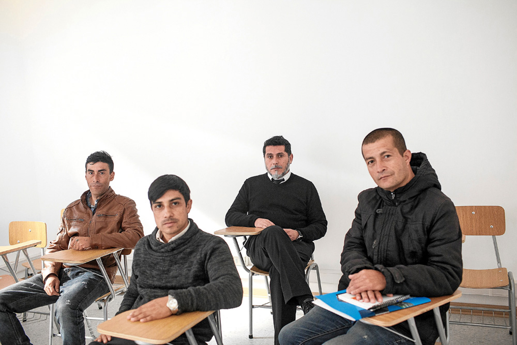 El profesor le explica que es normal que le pase eso, que ya irá acostumbrándose a hablar en público. El resto de los alumnos lo animan, y por un momento conversan sobre lo que sienten por estar aquí. Afuera va atardeciendo. A su manera, estos 18 hombres ya parecen compañeros.