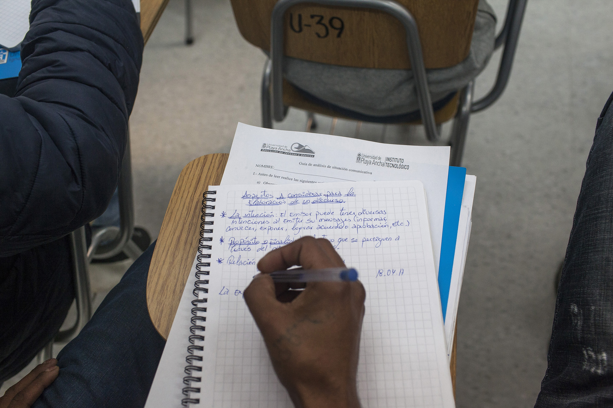 La carrera que están cursando es Técnico en Administración Logística, que les permitiría trabajar en almacenaje y distribución de mercaderías a gran escala o continuar afuera con Ingeniería. El programa dura dos años, más un proyecto de tesis, con clases impartidas por profesores de la universidad. Pero primero tienen que reforzar otras cosas, como la dificultad que tiene la mayoría para hablar sin léxico carcelario. Por eso, en estas primeras clases han hecho cosas como simular entrevistas laborales, grabar publicidades de radio y analizar discursos en video.