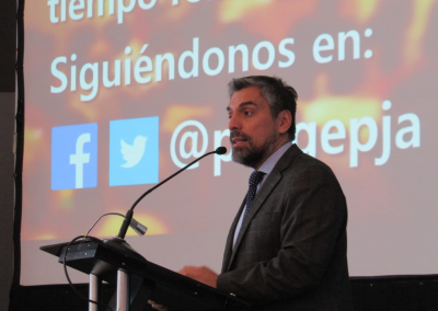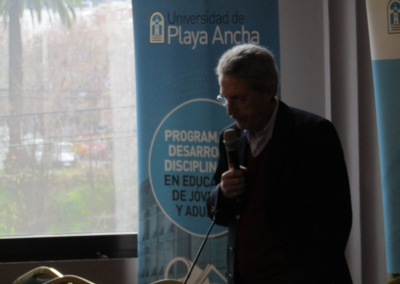 La conferencia de apertura, titulada “Tensiones y desafíos de la educación de personas jóvenes y adultas, en el presente y futuro próximo», estuvo a cargo del licenciado Jorge Camors de la Universidad de la República Uruguay (UDELAR). Ante una atenta audiencia de más de 130 asistentes, ilustró sobre el problema general de la pedagogía y su gestión, enfatizando principalmente en la relación de las tensiones y desafíos de la EPJA, dando a conocer una propuesta educativa que suma contextos y contenidos para sumir el trabajo educativo a una mediación: entre una gestión pedagógica o una pedagogía que se gestiona.