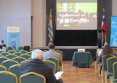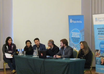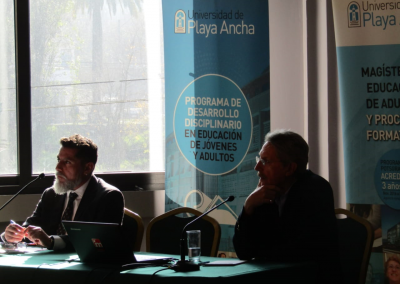 Posterior a la ronda de preguntas y comentarios, se dio paso a la segunda mesa, moderada por el académico de las universidades de Playa Ancha y de Valparaíso, Jorge Osorio Vargas, quien dio paso a la presentación “Diversidad en el aula: prácticas para el desarrollo profesional en contextos de EPJA en una comuna de la Región de Valparaíso” de Tabata Contreras y Claudio Quezada, docentes del PACE de la Pontificia Universidad Católica de Valparaíso. Siguió la estudiante del Magíster de Educación de Educación de Adultos de la Upla, Yessica Garay, titulada “Prácticas pedagógicas emergentes en educación no formal. Aportes para una pedagogía entre adultos”. Cerró la mesa la coordinadora del Diplomado en Educación de Jóvenes y Adultos/as de la Universidad Academia de Humanismo Cristiano, Natalia Kompen, con la exposición “Educación Popular y Aprendizaje transformacional como Propuesta de Formación Docente para Educadores/as de Jóvenes y Adultos/as”.