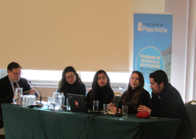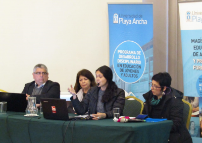 La mesa número cuatro, fue conducida por el director de Investigación de la Facultad de Educación de la Universidad de Antofagasta, Nicolás Ponce Díaz, quien presentó al director del Centro de Estudios San Ignacio de Villa Alemana, Francisco Pinochet, quien dio cuenta de los principales alcances de su trabajo titulado “Atención a la diversidad educativa y social en base la creación de un departamento de Orientación». Continuó la estudiante del Magíster en Educación de Adultos de la UPLA, Vivian Astudillo, quien se refirió a “La evaluación educativa en las representaciones sociales de jóvenes y adultos participantes en el ‘Programa de Nivelación de Estudios Básicos y Medios, Modalidad Flexible’, ejecutado en la Universidad de Playa Ancha año 2018”. El siguiente estudio presentado fue el elaborado por la Coordinadora de Alfabetización de SECREDUC-V, expuesto por María Fernanda Vásquez Báez, el que abordó la pregunta “¿Cómo la alfabetización, siendo parte de la pedagogía hospitalaria y de educación de jóvenes y adultos, impacta en los procesos educativos y sociales de estudiantes con diagnóstico de esquizofrenia?”. Finalizaron las b, con su trabajo “La irrupción de nuevos actores en la EPJA: Migrantes y jóvenes. Experiencia de dos educadoras de un CEIA y un liceo tercera Jornada”.